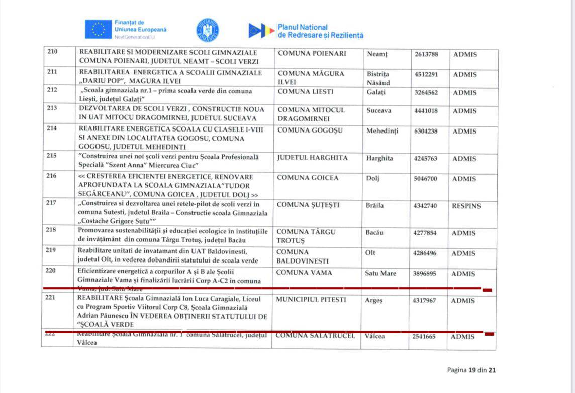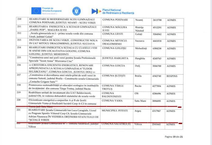 Ministerul Educației a publicat lista proiectelor admise pentru finanțarea unităților de învățământ în vederea obținerii statutului de școală verde! Piteștiul a obținut aproximativ 6 milioane de euro, ne-a informat primarul Pitestiului, Cristian Gentea, la conferinta de inchidere de an de la Primaria Pitesti de joi, 21 decembrie.  Astfel, prin PNRR vor beneficia de finanțarea lucrărilor de renovare cu accent pe educația pentru mediu, Școala Gimnazială ”Ion Luca Caragiale”, Liceul cu Program Sportiv Viitorul și Școala Gimnazială ”Adrian Păunescu”. Clădirile și spațiile aferente vor fi renovate prin izolație termică, panouri solare, laboratoare de științele naturii, spații verzi și facilități pentru colectarea selectivă a deșeurilor.