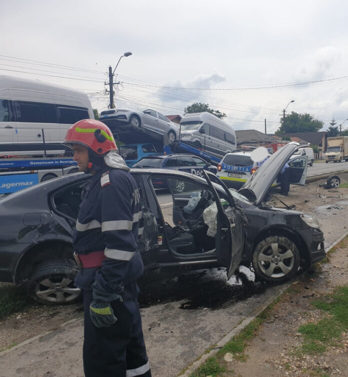 O masina a intrat într-un cap de pod. La fata locului intervin pompierii de la Detașamentul Pitești cu o autospecială de stingere cu apă și spumă, alături de un echipaj al Serviciului de Ambulanță Județean Argeș.