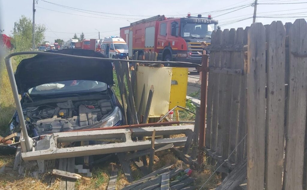 A intrat cu masina intr-un gard, dar si intr-un stalp de electricitate. Atat soferul masinii, o tanara in varsta de 24 de ani, cat si pasagerul acesteia, un tanar in varsta tot de 24 de ani, au fost raniti.