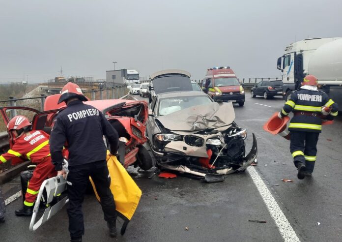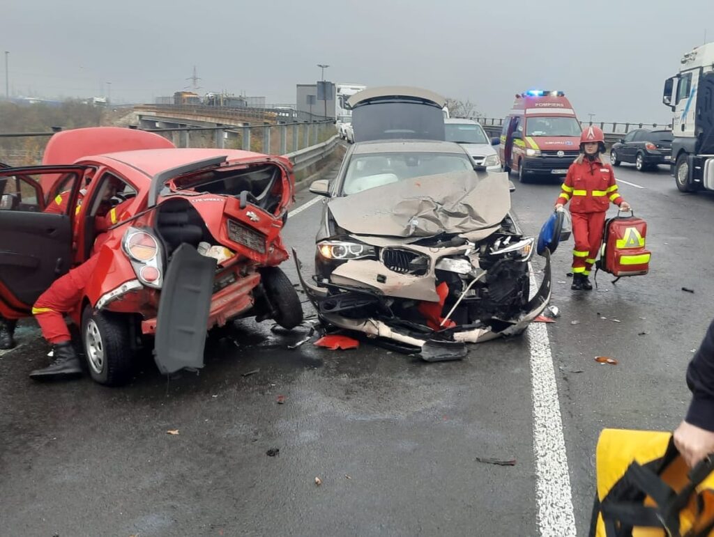O soferita s-a ales cu multiple traumatisme si a fost transportata de urgenta la spital, in urma unui accident rutier produs in zona Carrefour, pe A1. In urma impactului, doua masini s-au facut praf, iar la fata locului intervin pompierii cu o autospecială de intervenție și un echipaj SMURD de prim ajutor calificat.