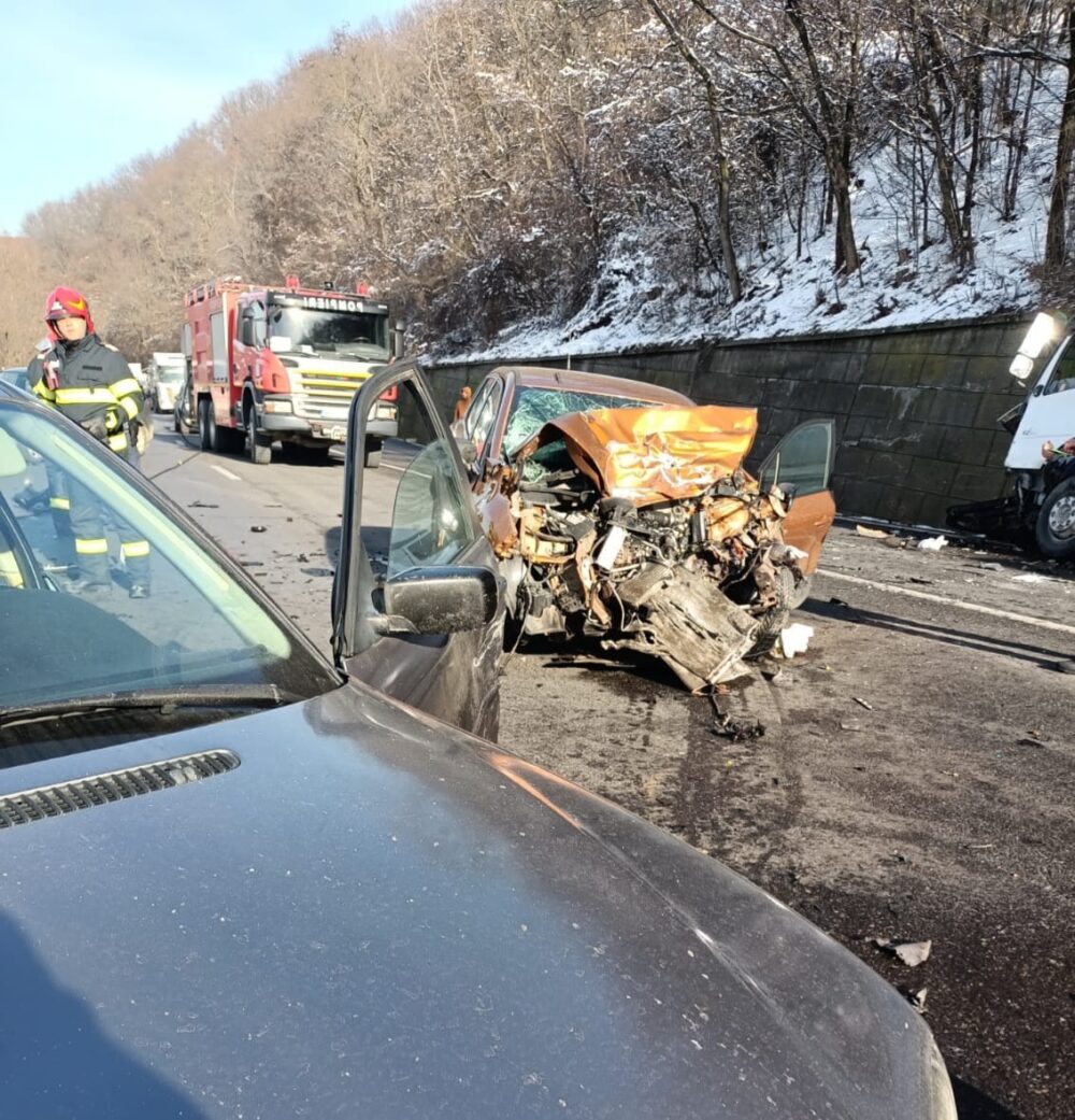 Accident cu doua autoturisme si un autocamion cu remorca, in comuna Dedulesti, judetul Arges. Accidentul este soldat cu o victima. Aceasta a fost preluata cu echipajul SMURD de Terapie Intensiva Mobila si transportata la spital. Masinile implicate in accident au fost grav avariate.