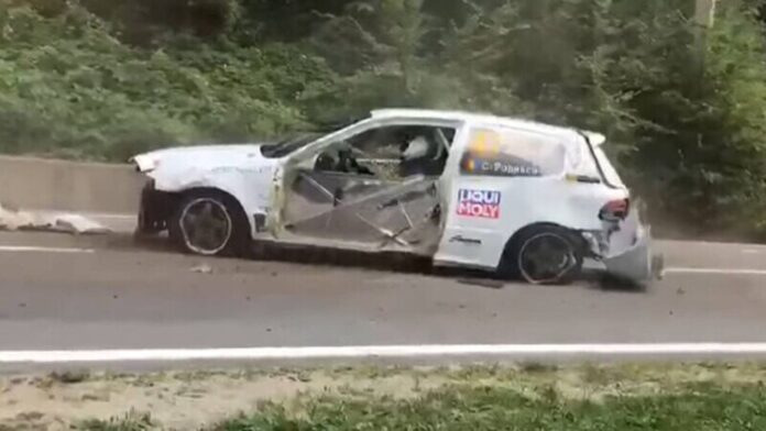 Accident teribil la Trofeul Campulung Muscel. Unul dintre piloti a pierdut controlul volanului intr-o curba si s-a rostogolit cu masina de cateva ori. Pilotul a scapat cu rani usoare. Pe margine erau privitori care filmau cursa si au surprins si momentul accidentului, moment in care unii dintre acestia s-au si speriat de impact.