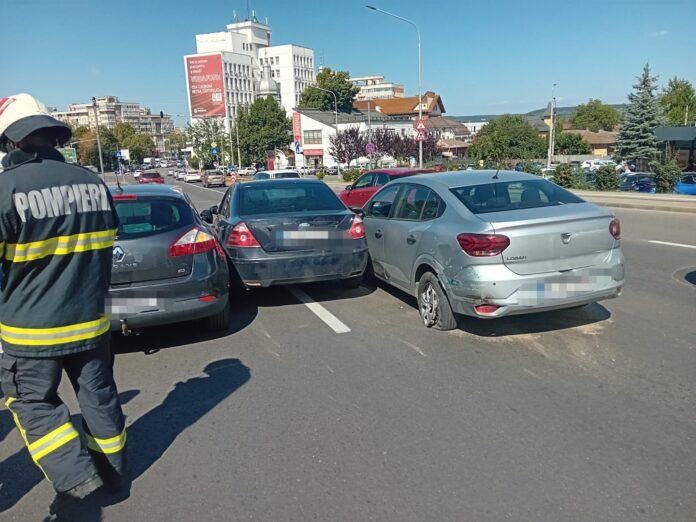 Accident cu trei autoturisme implicate, pe calea Craiovei, in municipiul Pitesti. Din informatiile primite, pana la acest moment, de la Inspectoratul pentru Situatii de Urgenta Arges o singura persoana este monitorizata de catre paramedicii SMURD. Aceasta prezinta atac de panica, nu are nevoie de transport ulterior la spital. La fata locului au intervenit pompierii de la Detașamentul Pitești cu o autospecială de intervenție și o ambulanță SMURD de prim ajutor calificat.