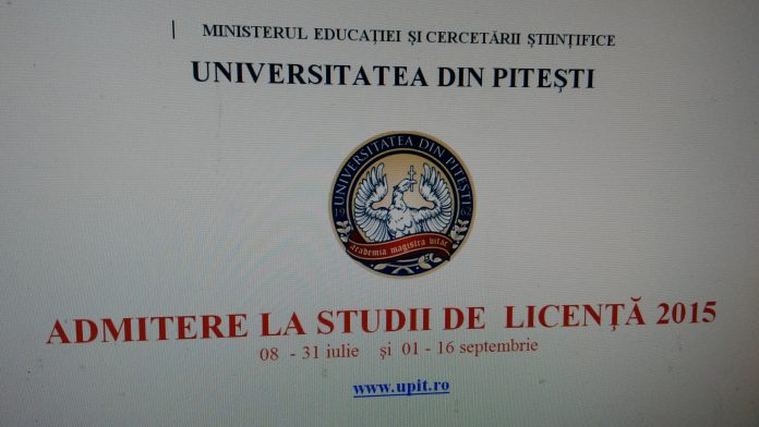Admiterea la studiile de licenta 2015 din cadrul Universitatii din Pitesti se va desfasura in perioada 8 – 31 iulie si 1 – 16 septembrie. Pentru prima sesiune inscrierile au loc in perioada 8 – 22 iulie, pentru ca pe data de 23 iulie sa se desfasoare probele de aptitudini, iar pe 23/24 iulie sa aiba loc proba de concurs. Afisarea rezultatelor se va face pe 25 iulie, iar timp de 24 de ore de la afisarea rezultatelor partiale candidatii vor putea face contestatii. Inmatricularile se vor desfasura in perioada 26 – 30 iulie, iar pe 31 iulie vor fi afisate rezultatele finale din prima sesiune.