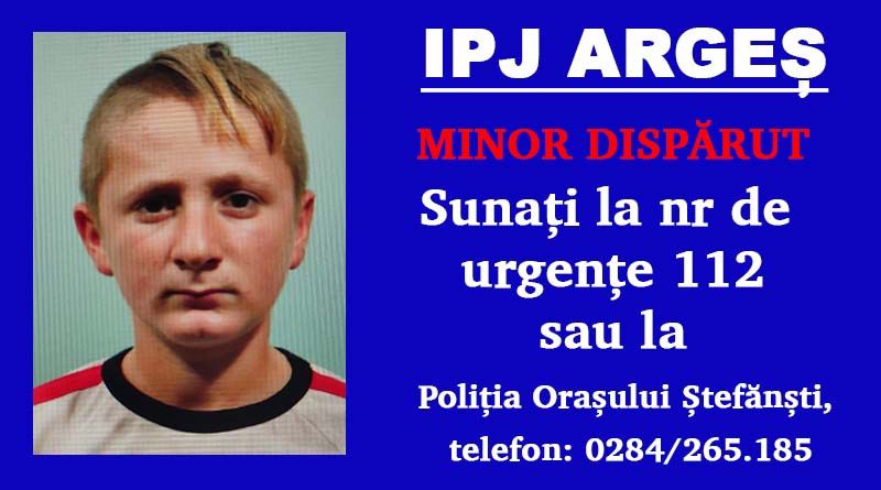În ziua de 19 septembrie a.c., în jurul orei 16:00, polițiștii din cadrul Poliției Orașului Ștefănești au fost sesizați de către reprezentanții unui centru pentru minori, cu privire la faptul că doi minori, Țițirigă Alexandru Vasile, de 16 ani, și *Țițirigă Petrișor Daniel, de 13 ani_, au plecat din cadrul centrului, fără a mai reveni.