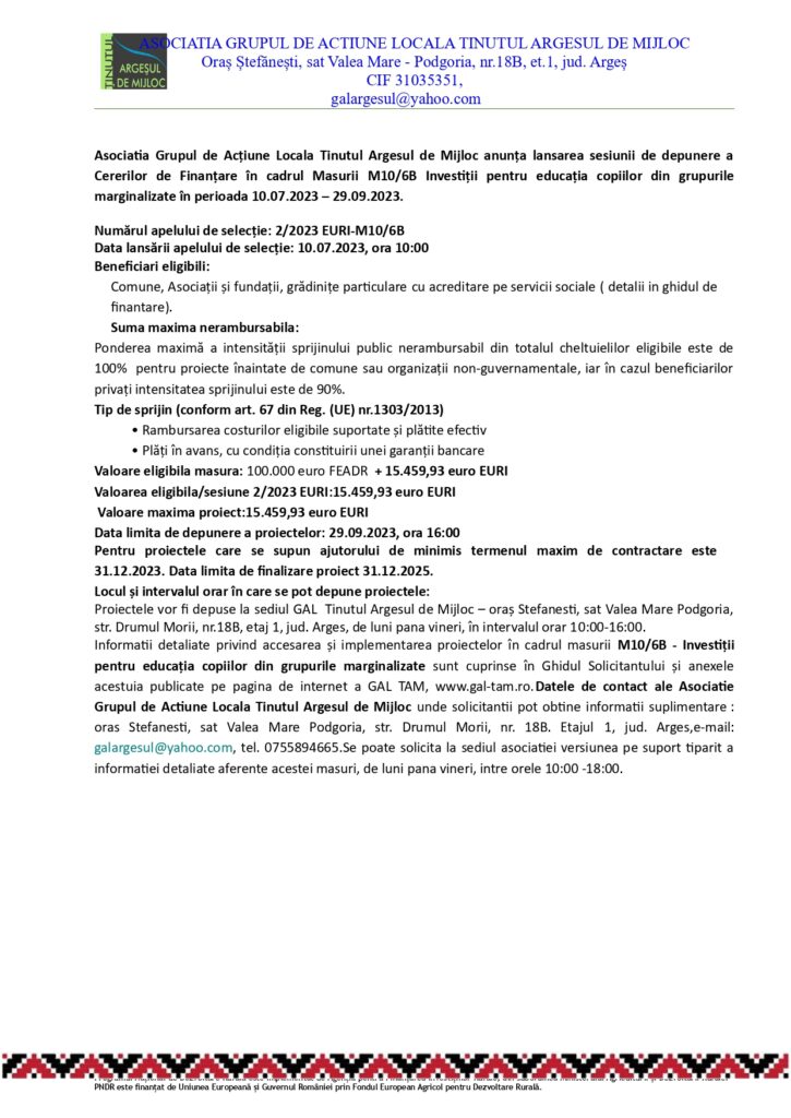 Util ANUNȚ Grupul de Acțiune Locală Ținutul Argeșul de Mijloc De ziarulag - July 5, 2023 0 417 Share on Facebook Tweet on Twitter