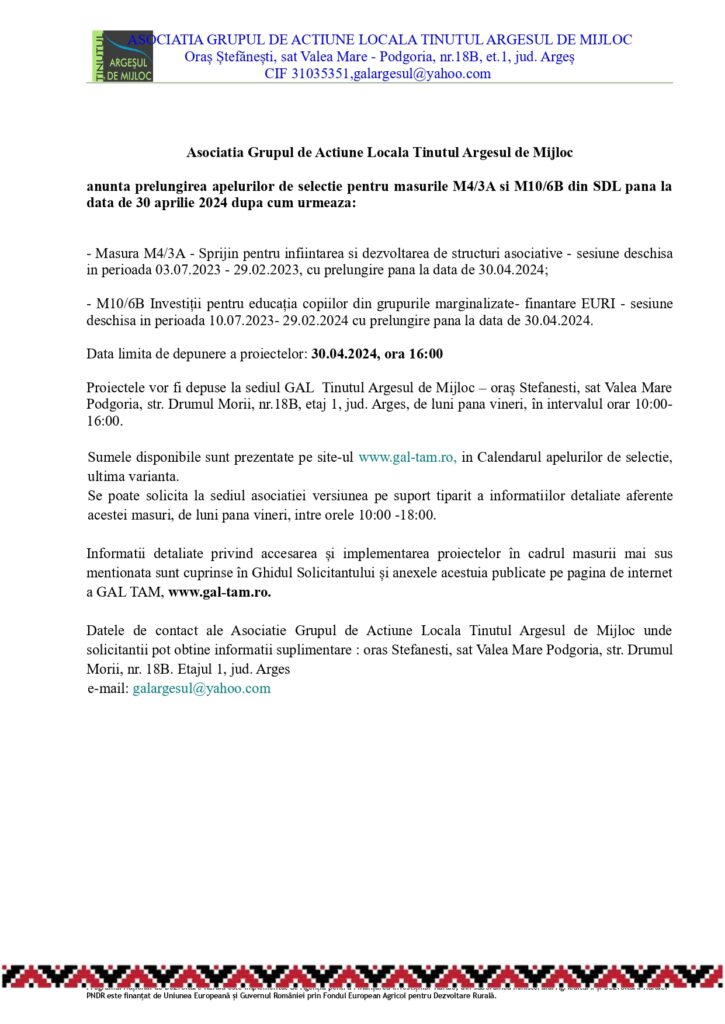 Actualitate ANUNȚ Grupul de Acțiune Locală Ținutul Argeșul de Mijloc De ziarulag - March 6, 2024 0 524 Share on Facebook Tweet on Twitter