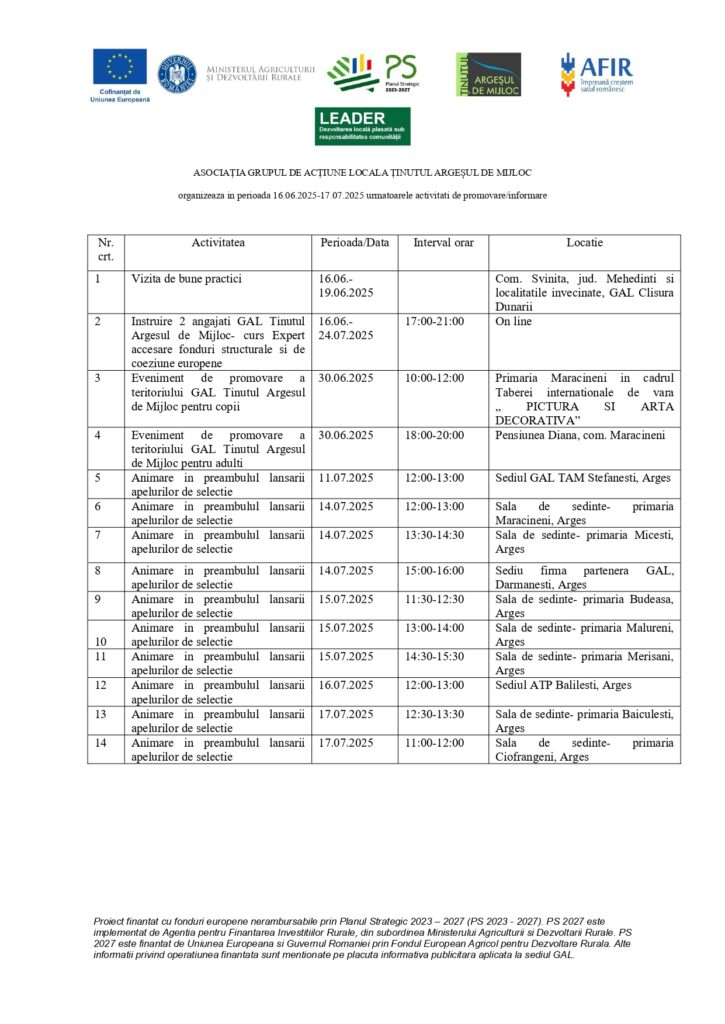 Actualitate ANUNȚ Grupul de Acțiune Locală Ținutul Argeșul de Mijloc De ziarulag - July 7, 2025 0 331 Share on Facebook Tweet on Twitter