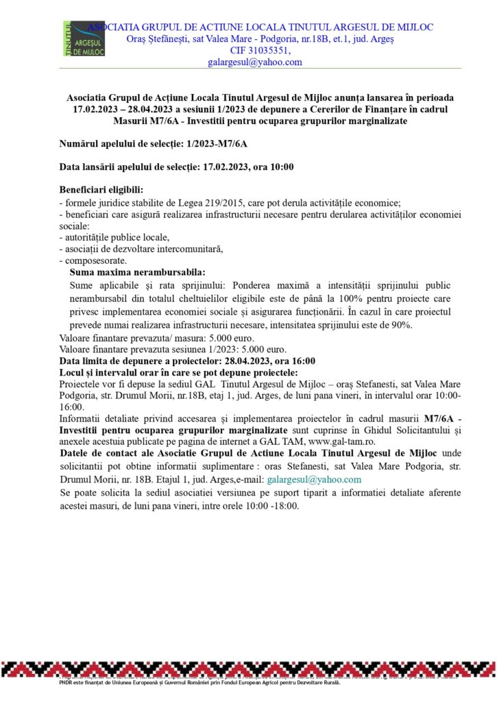 Util ANUNȚ Grupul de Acțiune Locală Ținutul Argeșul de Mijloc De ziarulag - February 7, 2023 0 894 Share on Facebook Tweet on Twitter