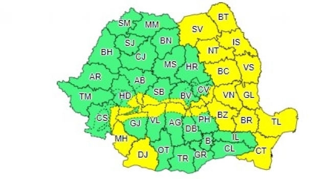 Administraţia Naţională de Meteorologie a emis o avertizare cod galben de intensificări ale vântului în mai multe judeţe din România (vezi hoto). Avertizarea intră în vigoare miercuri, 22 ianuarie, la ora 16:00, şi se va încheia pe 23 decembrie, la ora 20:00. Meteorologii ANM anunţă că în Carpații Meridionali și local în Orientali vor fi intensificări ale vântului, cu viteze la rafală de peste 90-100 km/h. În Moldova, vântul se va intensifica treptat, local și temporar cu rafale de 55-65 km/h, iar în cursul zilei de joi,23 ianuarie, 70-80 km/h.