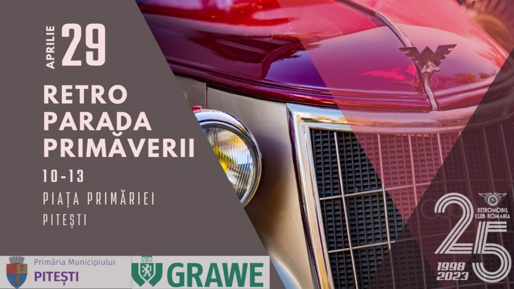 Piața Primăriei din Pitești va fi, în această sâmbătă, gazda unei expoziții inedite – „Retroparada Primăverii” 2023, eveniment organizat de către Retromobil Club România. Astfel, piteștenii vor avea prilejul de a admira, între orele 10:00 și 13:00, autoturisme atestate istoric după standardele FIVA, fabricate între anii ‘20 și ’90, aflate în colecția membrilor filialei RCR din județul Argeș.