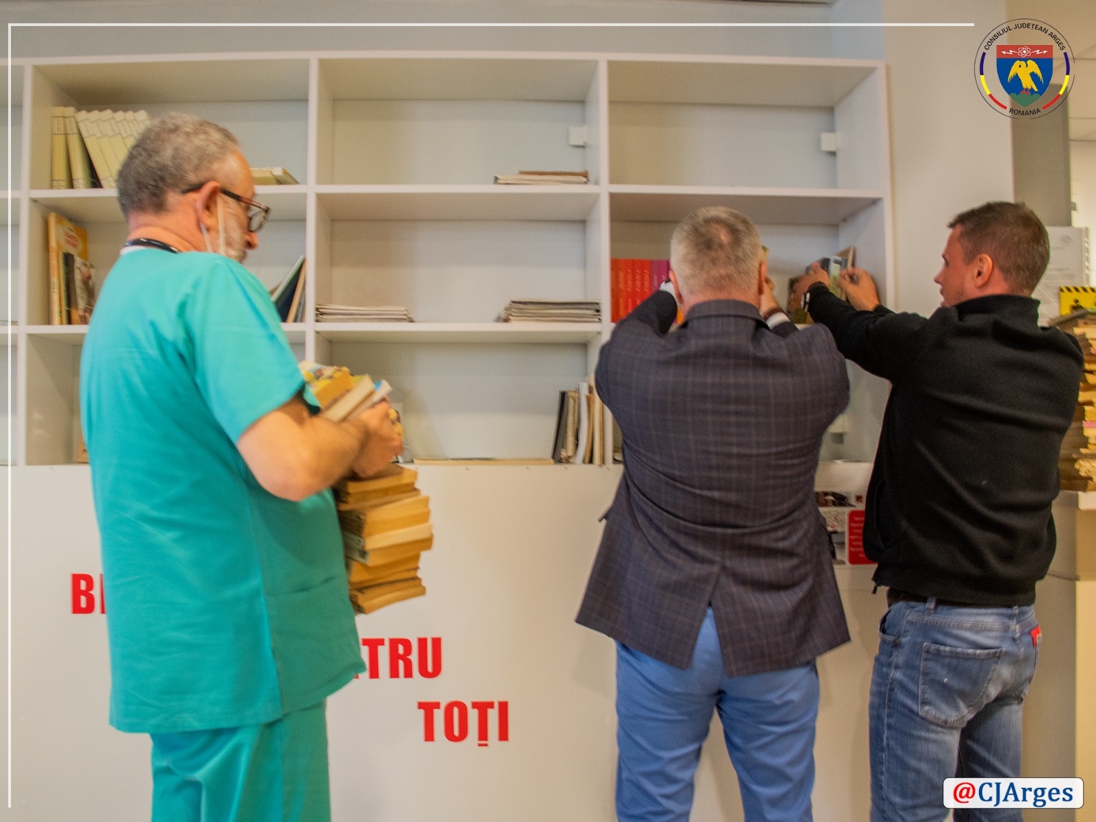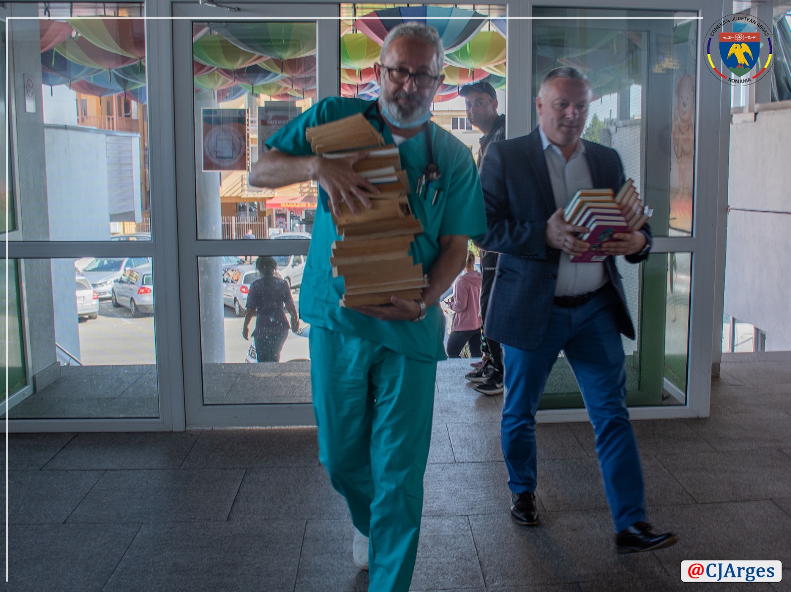 Pe lângă volume, vicepreședintele CJ Argeș a venit și cu jucării pentru micuții pacienți. Managerul Spitalului, Tudor Ionescu, și medicul urgentist Viorel Enache, care este și consilier județean, au primit donațiile al căror rol este acela de a aduce o stare de bine pentru copiii internați și pentru părinții aparținătorii.