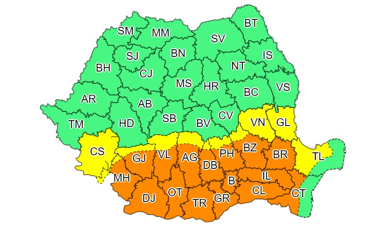 De marți (26 iulie) valul de căldură se va extinde din nou și va cuprinde cea mai mare parte a țării.ANM a emis şi alertă COD PORTOCALIU de val de căldură în intensificare și disconfort termic accentuat pentru duminică în sudul ţării.„Duminică (24 iulie) în Oltenia, Muntenia și sud-vestul Dobrogei valul de căldură se va intensifica. În general după-amiaza se vor înregistra valori termice de 38…41 de grade, iar noaptea nu vor coborî sub 20…22 de grade și prin urmare disconfortul termic va fi accentuat. Indicele temperatură-umezeală (ITU) va depăși pragul critic de 80 de unități.