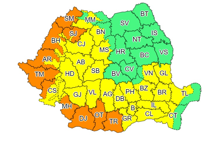 „Pe parcursul zilelor de vineri și sâmbătă (22 și 23 iulie) în Banat, Crișana, sudul Olteniei, sud-vestul Munteniei, nord-vestul Transilvaniei și în vestul Maramureșului valul de căldură se va intensifica. În general după-amiaza se vor înregistra valori termice de 38…40 de grade, iar noaptea nu vor coborî sub 20…22 de grade și prin urmare disconfortul termic va fi accentuat. Indicele temperatură-umezeală (ITU) va depăși pragul critic de 80 de unități”, au anunţat meteorologii.Canicula va continua şi săptămâna viitoare. ANM a emis AVERTIZARE METEOROLOGICĂ COD GALBEN pentru zilele de 24 și 25 iulie când se aşteaptă val de căldură, disconfort termic ridicat.