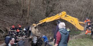 Intervenție de urgență: un vehicul s-a răsturnat în albia unui pârâu