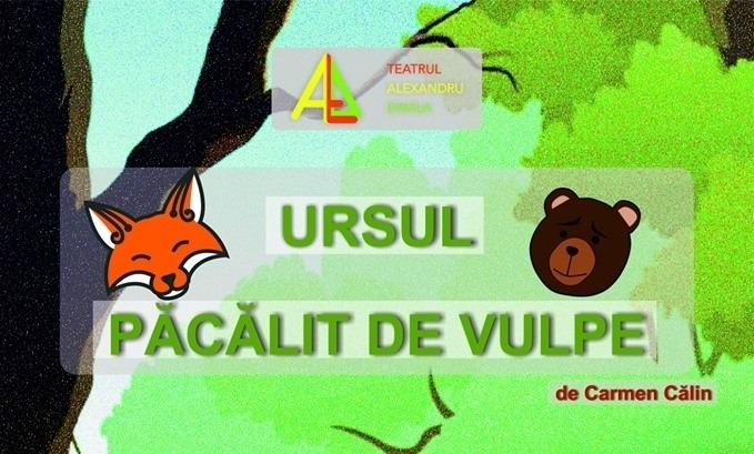 Ora: 11:30 – URSUL PĂCĂLIT DE VULPE – Anecdota „Ursul păcălit de vulpe” este o povestire nemuritoare a lui Ion Creangă care ne aduce zâmbetul pe buze indiferent de vârstă. Vă așteptăm cu drag, să ne bucurăm împreună de povestea atât de dragă a copilăriei noastre! (TEATRUL ”ALEXANDRU DAVILA” – Sala Studio).