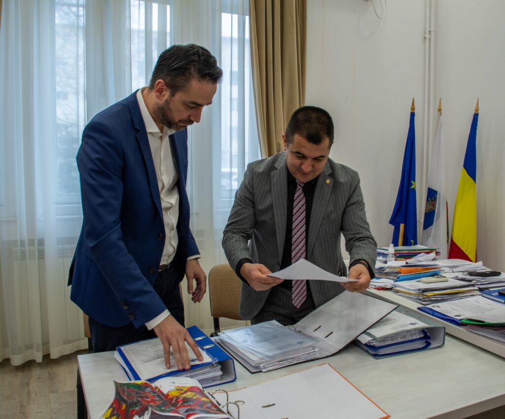 City-managerul municipiului Pitești, Lucrețiu Tudor, i-a înmânat vicepreședintelui Consiliului Județean Argeș, Adrian Dumitru Bughiu, autorizația de construire pentru Reabilitarea Palatului Administrativ.