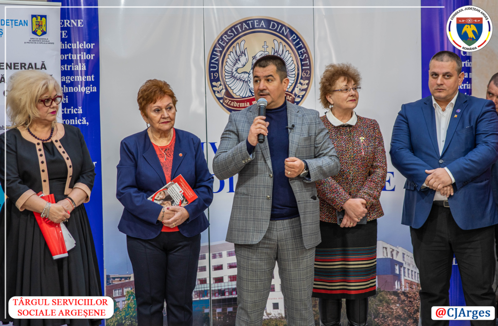 Adrian Dumitru Bughiu, vicepreședintele Consiliului Județean Argeș, împreună cu doctorul Viorel Enache, președintele comisiei sociale din cadrul Consiliului Județean, au fost prezenți la deschiderea primei ediții a Târgului Serviciilor Sociale Argeșene. Organizat cu prilejul Zilei Mondiale a Asistenței Sociale de către Direcția Generală de Asistență Socială și Protecția Copilului Argeș, în parteneriat cu Universitatea din Pitești, Târgul a reunit numeroși furnizori de servicii publice (autorități județene și locale), precum și organizații neguvernamentale și furnizori privați de servicii sociale.