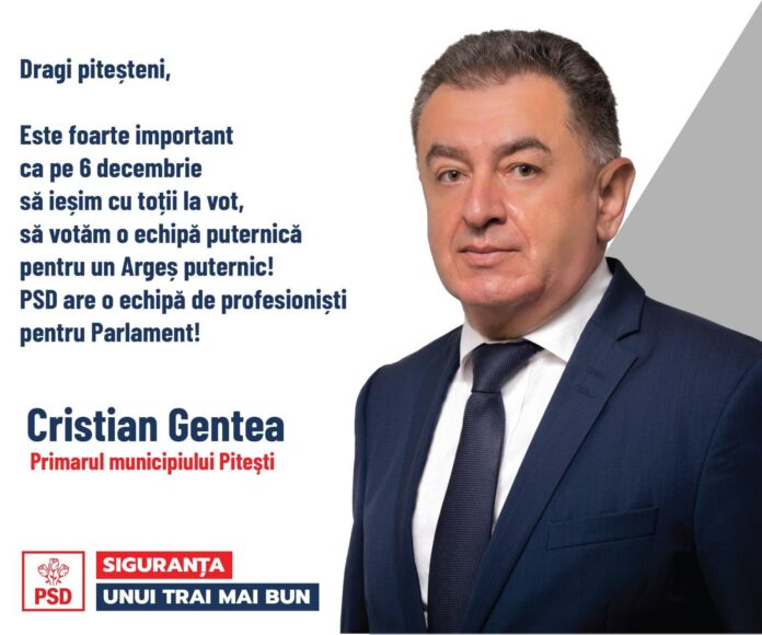 Cristian Gentea, primarul municipiului Pitești, îi îndeamnă pe piteșteni să meargă la vot duminică și să voteze o echipă de profesioniști pentru Parlament: