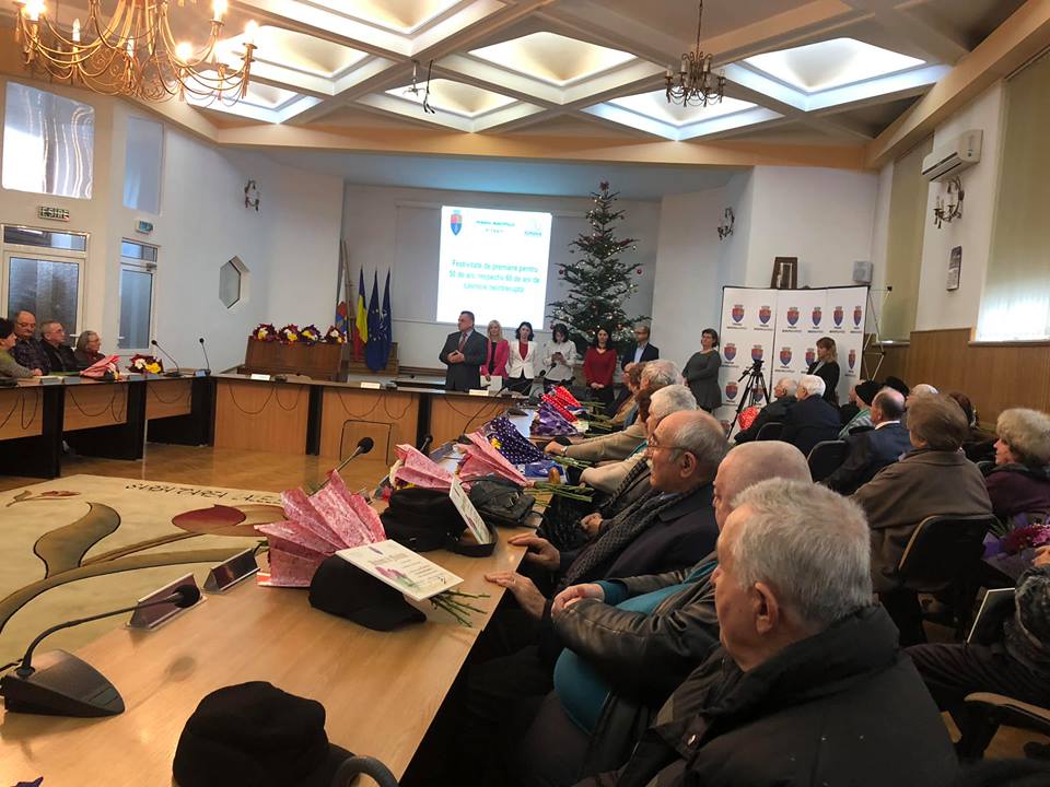 În sala mare a Primăriei Municipiului Pitești, 47 de cupluri au fost premiate pentru 50 de ani, respectiv 60 de ani de căsnicie neîntreruptă. În baza hotărârii Consiliului Local Pitești, primarul municipiului Pitești, Cornel Constantin Ionică, a oferit unui număr de cinci cupluri cu o căsnicie de șaizeci de ani, precum și soților care au împlinit 50 de ani de mariaj neîntrerupt, flori, diplome și premii în valoare de 600 de lei pentru fiecare pereche. Cu emoție vădită, cuplurile, ajunse la vârste venerabile, au apreciat gestul și au mulțumit administrației locale pentru atenția acordată.
