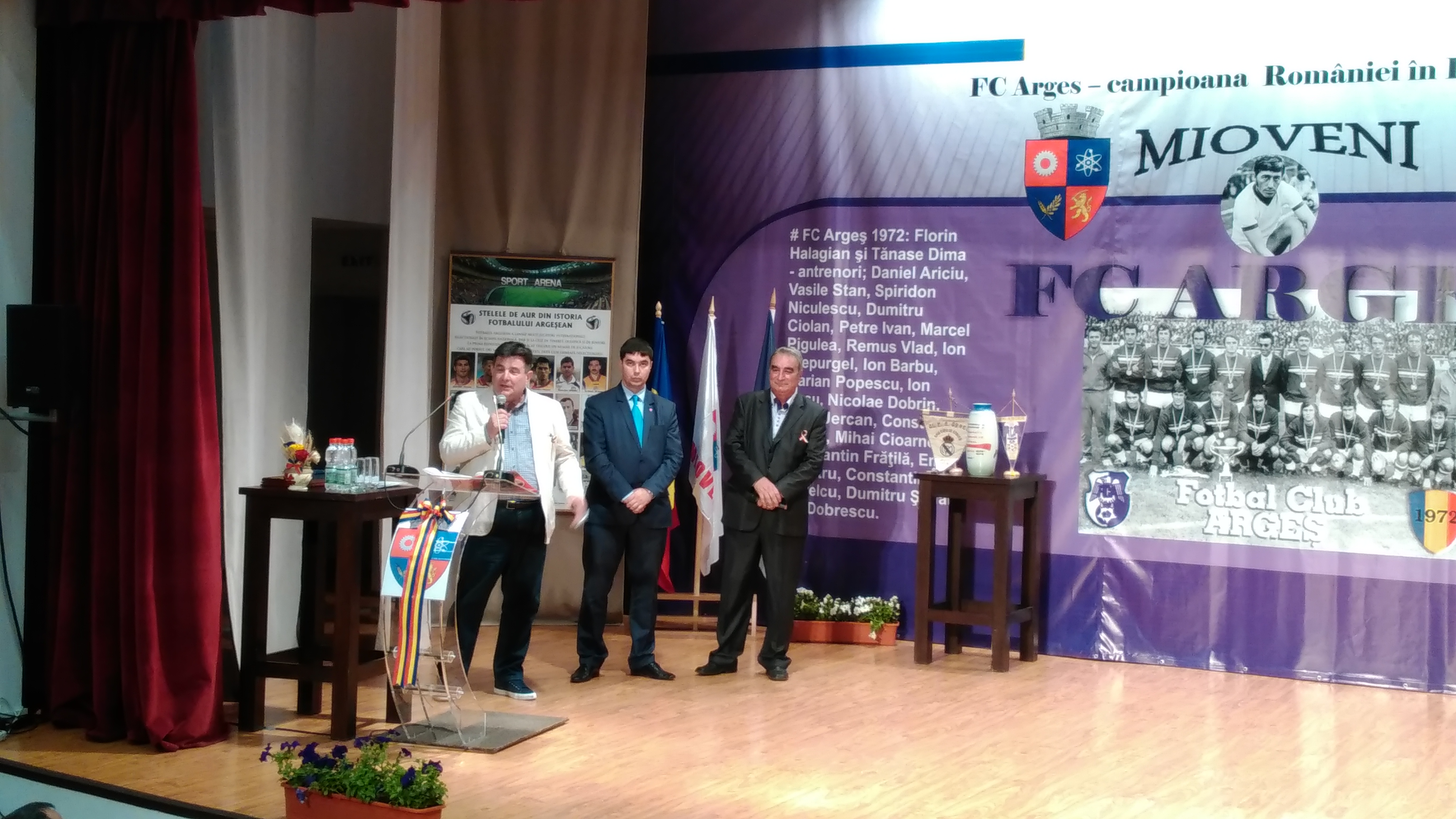 Au fost aplaudati de intreaga sala, la urcarea pe scena, fostii mari jucatori ai FC Arges. Printre cei prezenti: Ilie Barbulescu, Radu I, Radu II, Radu III, Jean Barbu, Adrian Neaga, Vasile Florescu, Mihai Zamfir, Razvan Tunaru, Adrian Dulcea, Paul Ciobanu, Doru Toma, Dan Ionascu. ”L-am suparat la inceput pe domnul director Sevastian Tudor, pana m-am hotarat cu invitatul. Eu am vrut sa fie tiparita la Mioveni si lansata la Pitesti, insa ma bucur ca ati venit aici si veti pleca de la Mioveni cu o amintire frumoasa”, a declarat primarul orasului Mioveni, Ion Georgescu.