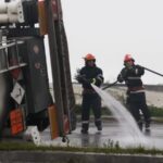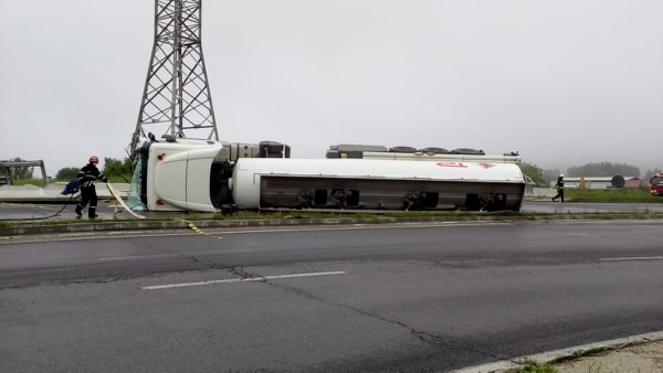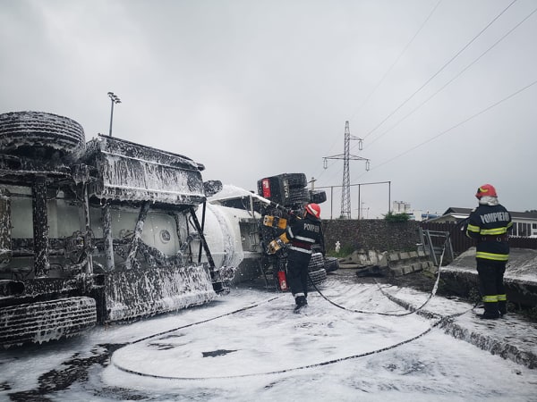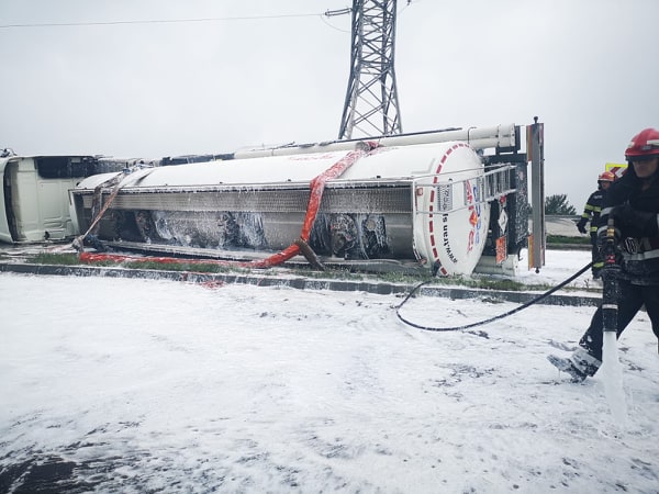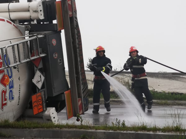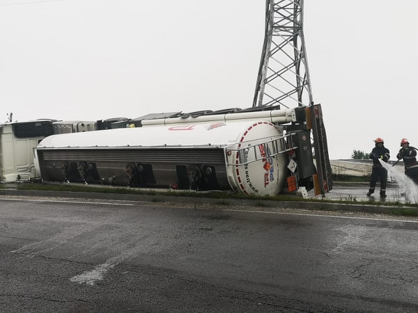 Acțiune intensă, joi dimineața, a forțelor Inspectoratului pentru Situații de Urgență Argeș, după ce un autocamion cu remorcă tip cisternă s-a răsturnat la ieșirea de pe A1, spre Bascov. Cisterna era încărcată cu 33 de tone de combustibil, benzină și motorină și exista pericol de explozie din cauza liniei de înaltă tensiune aflată în apropierea cisternei. La fața locului a sosit și o alta cisternă, luându-se în calcul și transvazarea combustibilului.
