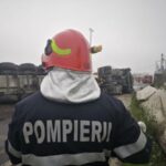 UPDATE. În Argeș! Acțiune PERICULOASĂ a pompierilor! Cisternă încărcată cu COMBUSTIBIL, RĂSTURNATĂ