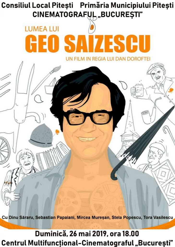 Documentarul de lungmetraj independent „Lumea lui Geo Saizescu” este o incursiune în fascinanta lume a personajelor de film create şi puse în valoare de marele regizor. Prin intermediul poveştilor spuse de Maia Morgestern, Sebastian Papaiani şi Ileana Stana Ionescu, poţi să te bucuri de ultimul interviu al lui Geo Saizescu, realizat în curtea sa de la Dărăşti Vlaşca, dar şi de momente pline de nostalgie ale comediei autohtone din perioada în care filmul românesc avea o adevărată valoare. Vei păşi în lumea regizată de marele Saizescu încă din anul său de debut, 1958, când a realizat singura operă cinematografică bazată pe textul maestrului Tudor Arghezi, în care apare şi fiica acestuia, Mitzura Arghezi, alături de Nineta Gusti, Grigore Vasiliu-Birlic şi Ion Lucian. Prețul unui bilet la „Lumea lui Geo Saizescu” este de 6 lei, cu reduceri de 50% pentru studenți și pensionari și de 75% pentru elevi.