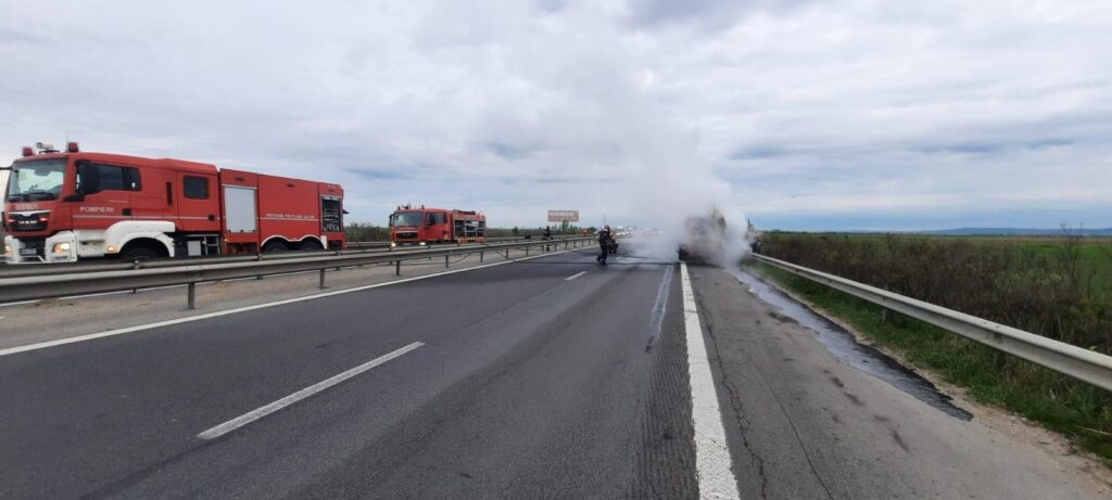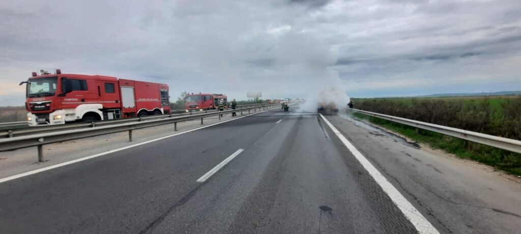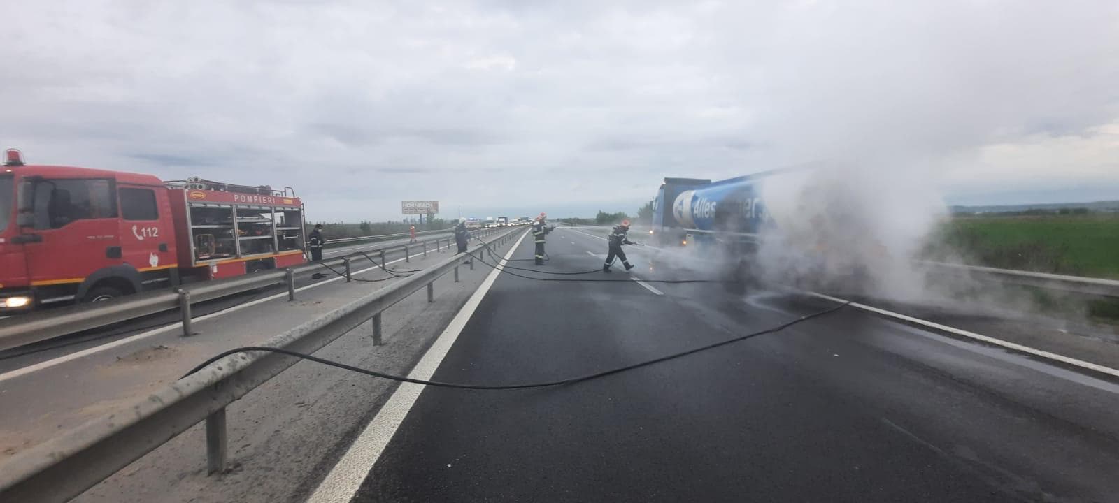 In aceasta dimineata, incendiu pe autostrada A1, la o cisterna. La fata locului au intervenit pompierii cu trei autospeciale de stingere cu apa si spuma, un echipaj SMURD si un echipaj CBRN. Cisterna transporta 30 de tone de motorina si benzina. Incendiul se afla pe autostrada A1, la kilometrul 97, pe sensul de mers Bucuresti – Pitesti. Nu exista risc de explozie.