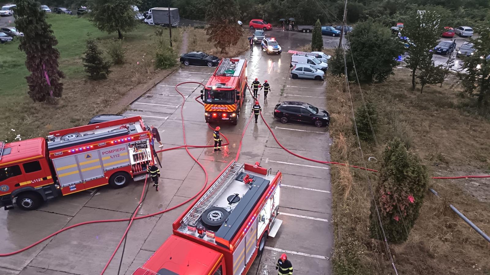 La fața locului au intervenit de urgență șase autospeciale de stingere, o autospecială de intervenție și salvare de la înălțime, precum și o ambulanță SMURD de prim ajutor calificat.