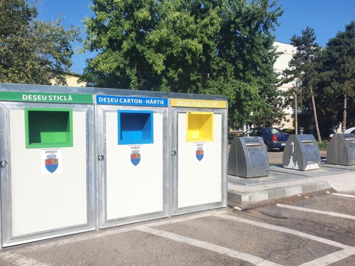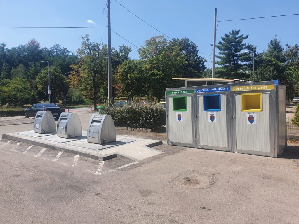 Primăria Municipiului Pitești a achiziționat 36 de pubele pentru colectarea deșeurilor reciclabile din plastic/metal, hârtie/carton și sticlă, care vor fi montate în 12 platforme de colectare selectivă (3 bucăți -hârtie, plastic, sticlă – pentru fiecare platformă).