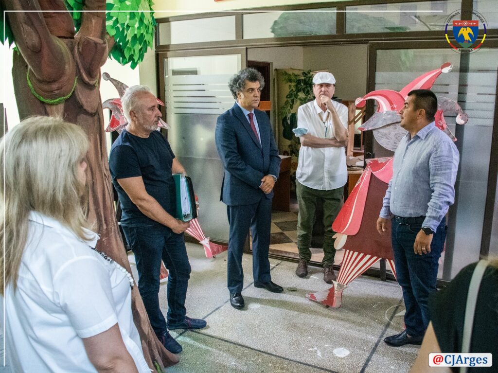 Vicepreședintele Consiliului Județean Argeș, Adrian Dumitru BUGHIU, administratorul public al județului, Marius Cristian PUIU, însoțiți de Roxana STOENESCU – director executiv Direcția Cultură, Turism și Tineret și Carmen MOCANU – director executiv Direcția Economică din cadrul CJ Argeș, au efectuat, împreună cu regizorul Dan TUDOR, noul manager al Teatrului “Alexandru Davila”, o vizită la Teatrul pentru copii și tineret “Așchiuță”.