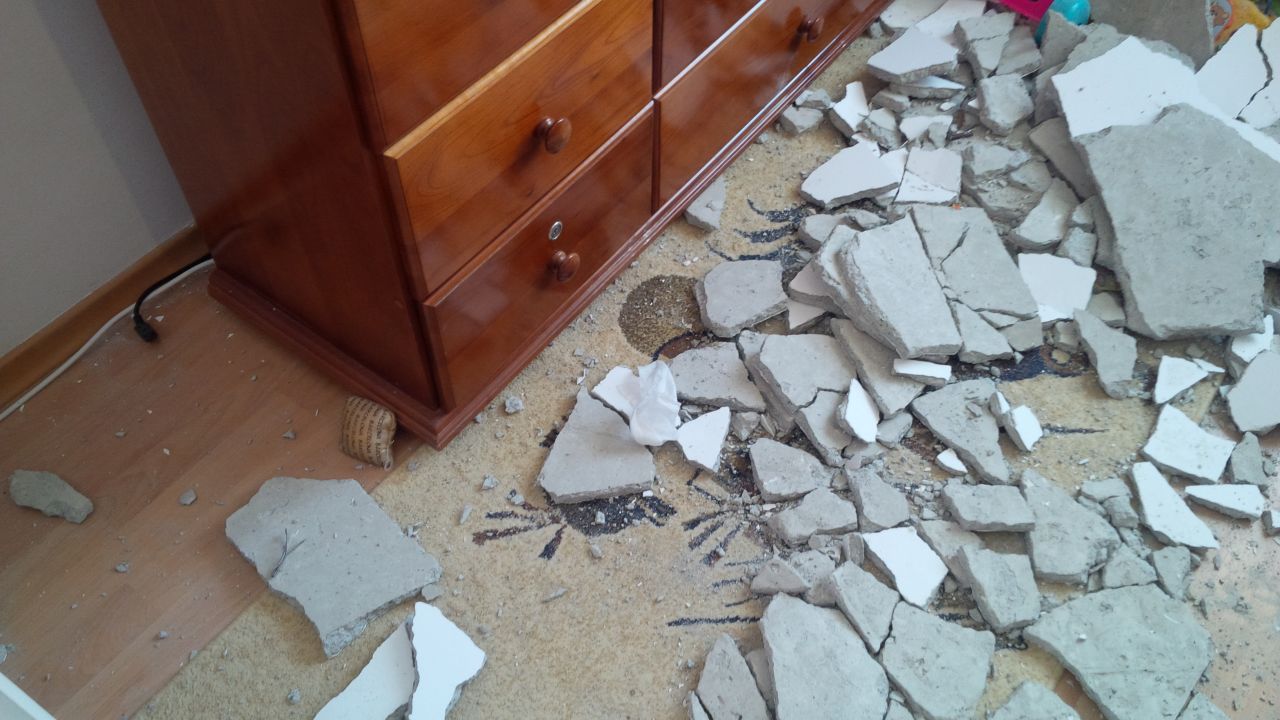 “Aceasta este tencuială de ipsos, este grea, are cel puţin un kilogram, dacă îţi cade un kilogram în cap sunt mari şanse să nu supravieţuieşti sau să rămâi handicapat pe viaţă”, a declarat unul dintre membri familiei.