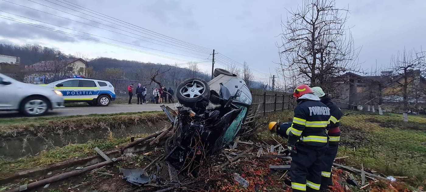 Si-a facut masina praf, iesind de pe carosabil si intrand intr-un gard, in curtea unui gospodar din comuna Bogati, judetul Arges.