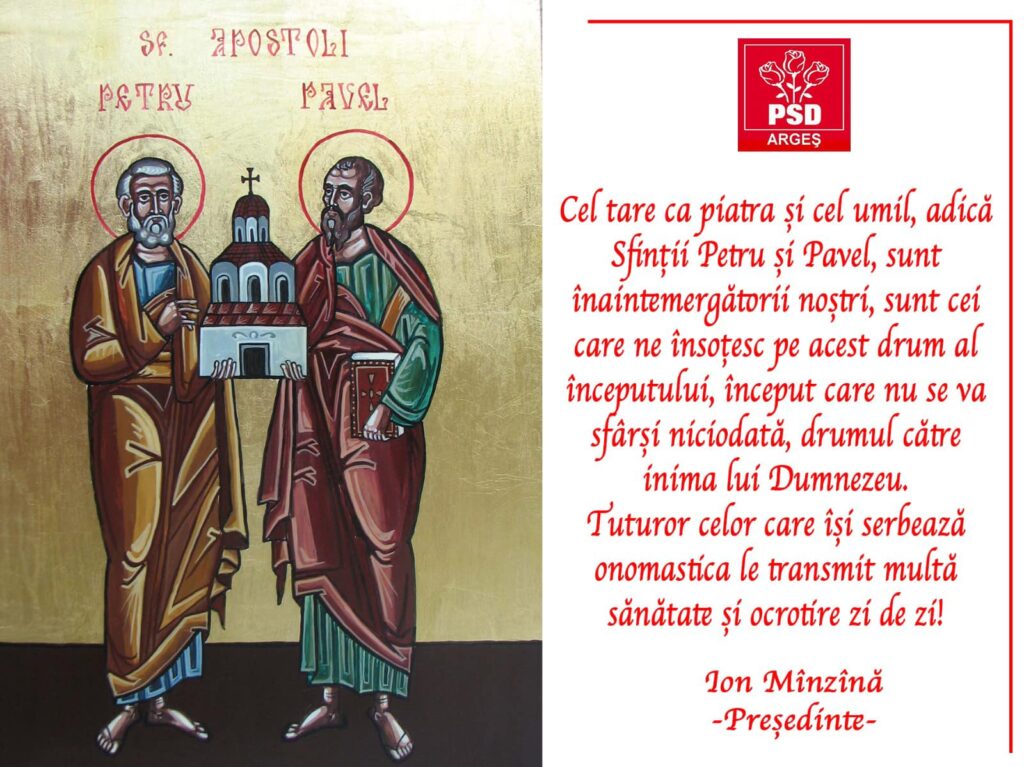 Felicitari MESAJUL presedintelui PSD Arges, Ion Minzina, de Sfintii Apostoli Petru si Pavel! De ziarulag - June 29, 2023 0 374 Share on Facebook Tweet on Twitter