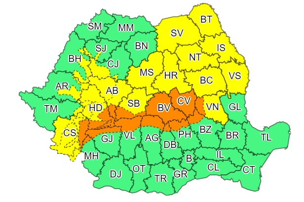 Administraţia Naţională de Meteorologie a emis, de asemenea, alertă meteo COD PORTOCALIU, valabilă pentru intervalul 17 martie, ora 10:00 – 17 martie, ora 23:00. În zona Carpaților Meridionali și de Curbură va continua să ningă abundent, iar vântul va avea intensificări susținute, cu rafale de peste 90…110 km/h, în special la altitudini de peste 1500 m, unde va fi viscol puternic, zăpada troienită, iar vizibilitatea va scădea sub 50 m.