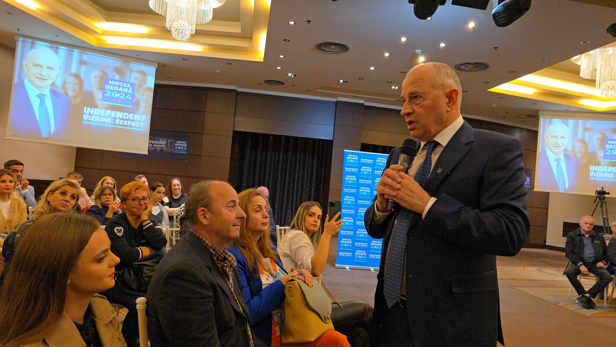 “Mi-am zis, haide sa scriu o carte pentru romanii mei si titul pe care l-am pus a fost Batalia pentru viitorul Romaniei si va spun sincer ca nu as fi crezut ca, dupa doi ani si ceva, titul acestei carti simbolizeaza aproape perfect miza uriasa a acestei perioade si de modul in care vom sti noi, romanii, de acasa, din diaspora, de la sate, de la oras, din Arges si pana in Satul Mare, din Constanta si pana la Timisoara, va depinde viitorul natiunii romane, nu doar pentru cinci ani sau 10 ani, pentru ca presedintii vin si pleaca…unii fac treaba buna, altii mai putin buna, altii deloc, dar va depinde viitorul natiunii romane pentru multe, multe decenii. Ce traim acum, dragi prieteni, este sfarsitul unei epoci istorice in Europa si in lume. Care a inceput cu caderea comunismului si care o data cu razboiul din Ucraina, cu razboiul din Orientul Mijlociu, cu ascensiunea Chinei, cu problemele care apar la nivel global, acest ciclu istoric s-a terminat. Incepe lucru nou. Si asa este in viata, in istorie. Dar ceea ce vreau sa va spun ca ceea ce se intampla acum in Europa, in lume, este o transformare fara precedent, o inclestare in care formatiunile puternice cu o administratie serioasa, cu o economie puternica, cu solidaritate sociala si cu incredere in sine si in viitor, ca de fiecare data, vor castiga, iar natiunile slabe, cu lideri slabi, cu coruptie, cu economii slabe, cu putina incredere in societate, intre noi si institutiile statului vor fi din pacate strivite de aceasta uriasa transformare. Miza acestor alegeri serioase este absolut colosala. Se refac cartile, se refac modelele economice, se refac scarile de influenta, este o perioada in care tehnologia modifica modul in care muncim, in care traim, in care comunicam si modul in care privim lumea.“, a fost mesajul transmis de Mircea Geoana, joi, la Ramada, in fata sustinatorilor sai.