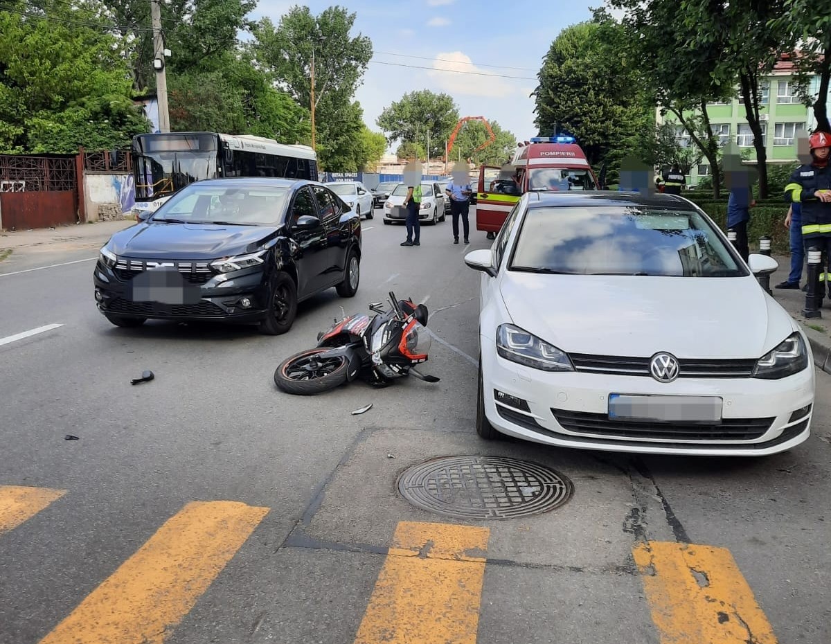 Accident in Pitesti, pe Bulevardul Republicii! O persoana este ranita si i se acorda primul ajutor. Este vorba despre un motociclist care a fost ranit in urma unui accident produs intre doua masini si o motocicleta. “Pompierii intervin pentru asigurarea zonei împotriva izbucnirii unui posibil incendiu și pentru a acorda primul ajutor calificat motociclistului.
