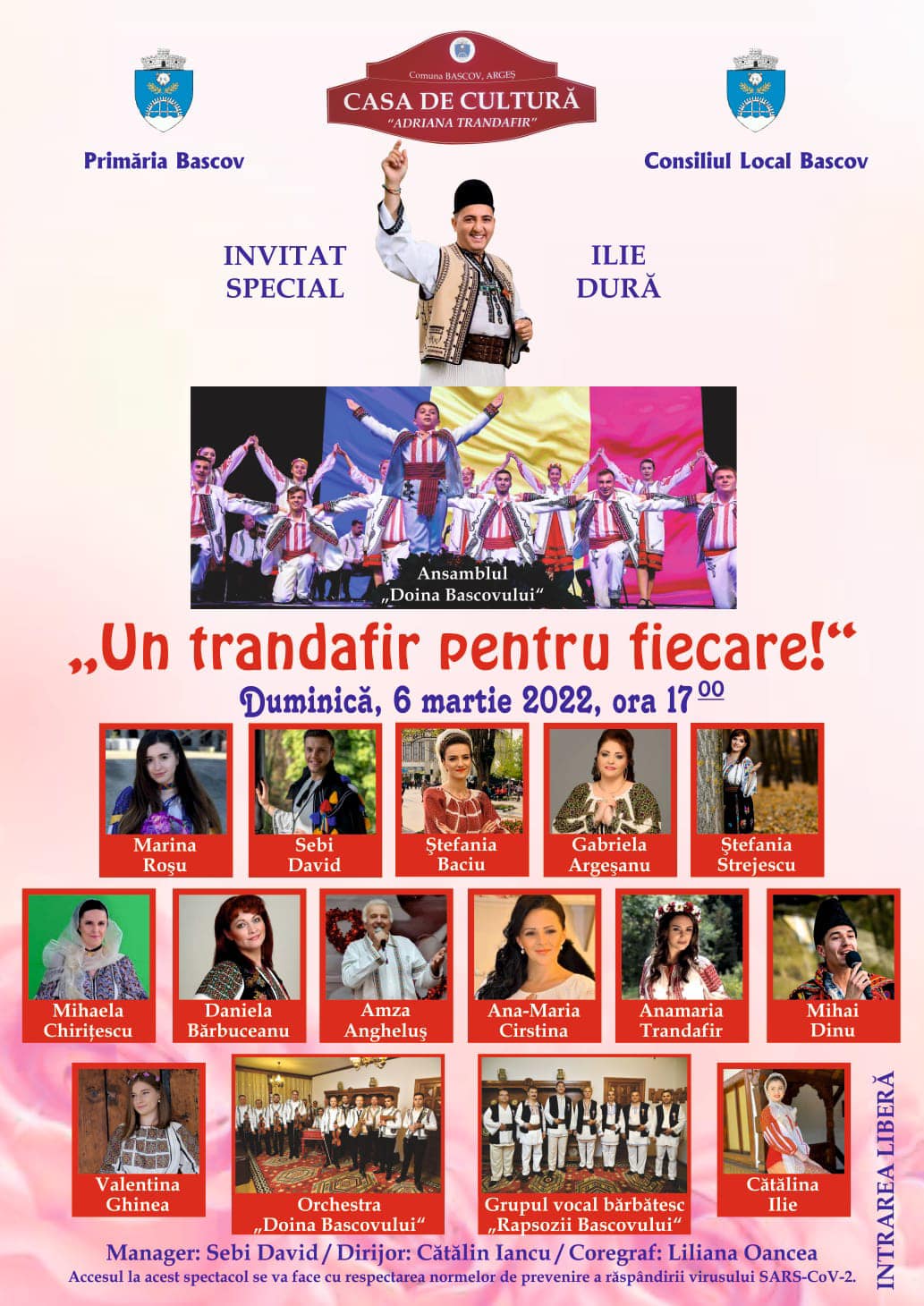 Invitați din toată țara au urcat pe scena institutiei culturale de la Bascov și au încântat sufletele publicului spectator. Vorbim despre artisti precum Ilie Dură, Ștefania Strejescu, Mihai Dinu, Marina Roșu, alături bineinteles de Ansamblul “Doina Bascovului” și grupul vocal bărbătesc “Rapsozii Bascovului”. Artistii au oferit momente unice în spectacolul “Un trandafir pentru fiecare!”.