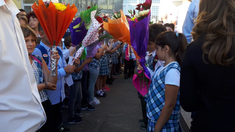 O primire inedită a micilor școlari. Un culoar cu flori realizat chiar de elevi. La Școala ”Mihai Eminescu” din Pitești, cei mai mici dintre școlari au intrat în unitatea de învățământ printr-un culoar de flori realizat de elevii claselor a IV-a. Cu emoții, aceștia au pășit timizi alături învățătoarele care le vor îndruma pașii de acum înainte.