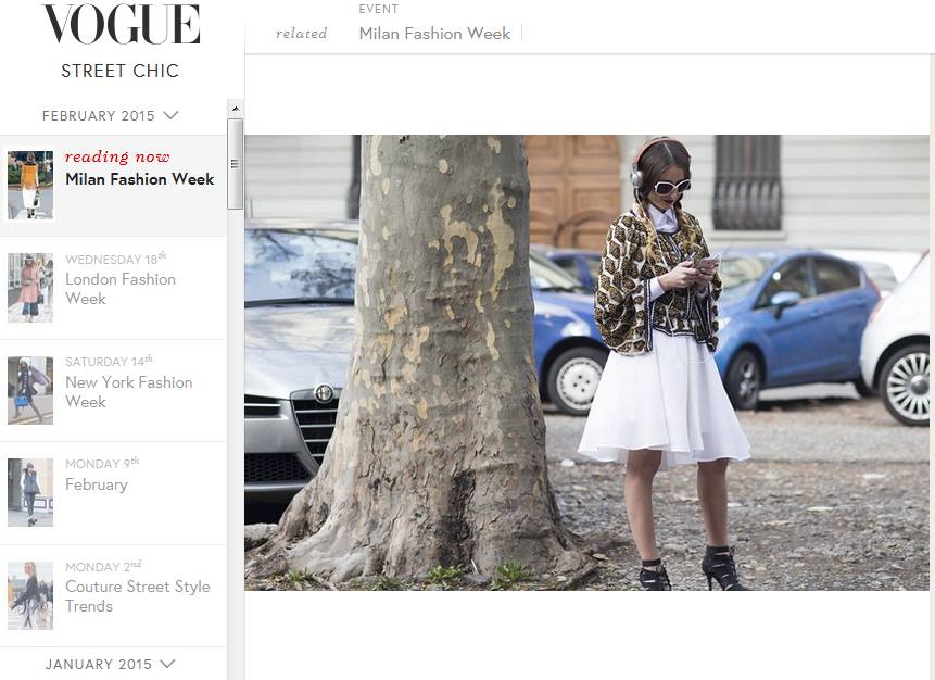 Blogul meu are mai putin de un an de zile de existenta si mi-am dorit inca de la inceput sa ajunga printre cele mai cunoscute bloguri din tara. Faptul ca am reusit sa particip la un eveniment atat de important, pentru mine este nemaipomenit. Acolo moda inseamna mult mai mult decat la noi, iar bloggeri sunt extrem de apreciati. Aparitiile in Vogue m-au uimit! Imi amintesc ca dupa ce am ajuns in tara ma uitam pe articolele cu cele mai bune aparitii de la MFW si mi-am regasit poza acolo. Poza mea, intre alte 40 de tinute, 40 cele mai bune tinute dintr-o saptamana intreaga, practic din peste 800 de outfituri. Nu are cum sa nu te bucure acest lucru, aprecierea celei mai bune publicatii de moda din lume este cea mai frumoasa incununare a muncii mele. Recunosc ca preferata mea este aparitia din Vogue UK, fiind o tinuta traditionala romaneasca, care a fost purtata cu mandrie, mandria de a fi romanca. Si iata ca portul traditional romanesc reuseste sa obtina un loc fruntas la cele mai bune tinute de la Milano Fashion Week.
