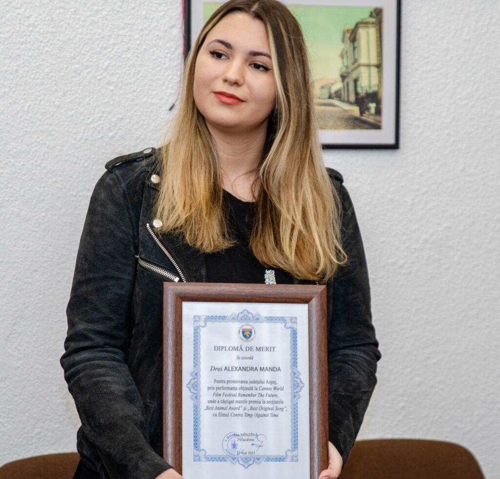 Piteșteanca Alexandra Manda face carieră în lumea filmului, iar peste câțiva ani numele ei se va afla pe lista celor mai mari și mai premiați regizori români. Deși este doar studentă în anul I la Regie Film și TV la Universitatea Hyperion București, Alexandra a câștigat deja marele premiu la Cannes World Film Festival Remember The Future, la două secțiuni din cele trei la care a intrat în finală, cu filmul documentar „Contra Timp”/ „Against Time”. Filmul are ca temă relația de prietenie și iubire dintre salvamontiști și câinii de avalanșă, dar și părțile mai puțin cunoscute și obstacolele pe care salvatorii montani și câinii le întâlnesc în viața de zi cu zi. Proiectul a fost realizat în colaborare cu Salvamont Argeș.