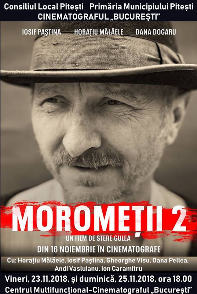 „Moromeții 2”, din nou la Cinematograful „București”! ”Ținând cont de interesul extraordinar al publicului piteștean și argeșean, care s-a dovedit a fi neîncăpător la proiecția de duminică seara (la care au participat 312 spectatori), am programat pentru acest weekend tot filmul „Moromeții 2””, ne informează directorul Cinematografului ”București” din Pitești, Jean Dumitrașcu. Astfel, vineri, 23 noiembrie, de la ora 18.00, și duminică, 25 noiembrie 2018, de la ora 18.00, la Cinematograful „București” difuzăm filmul „Moromeții 2”. Regia îi aparține lui Stere Gulea, în rolurile principale fiind Iosif Paștina, Horațiu Mălăele, Dana Dogaru, Răzvan Vasilescu, Gheorghe Visu, Oana Pellea, Andi Vasluianu și Ion Caramitru.