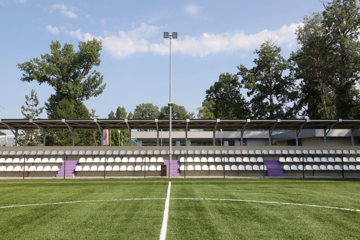 Scaunele montate în tribună sunt fixe, de culoare violet, fabricate din materiale durabile, rezistente la uzură. Destinația finală a amplasamentului este cea de complex sportiv, cu utilizare preponderentă pentru competiții sportive juvenile și antrenamente.