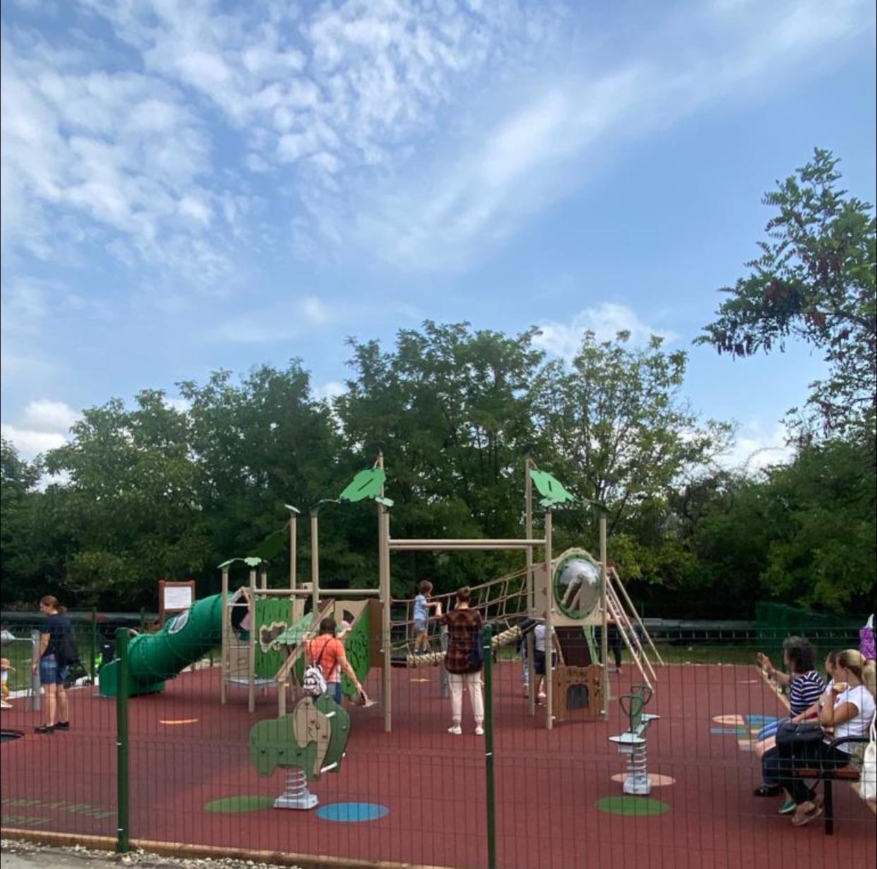 Cetățenii și copiii din zonă se pot bucura de un spațiu de recreere și de relaxare, prevăzut cu echipamente de joacă moderne, diferite constructiv și funcțional, bănci noi, covor elastic de cauciuc (tartan) – suprafață de contact sigură pentru protecția la impact.