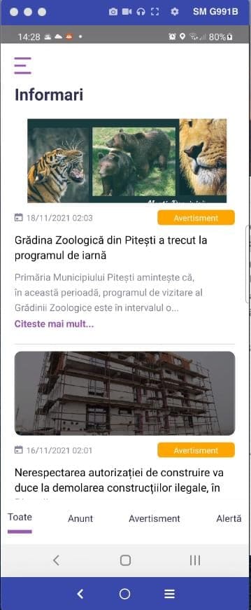 Aplicație iOS & Android: creată pentru cetățeni, oferind astfel acces rapid la informații/anunțuri/evenimente și posibilitatea de a trimite sesizări direct de pe telefonul lor mobil.