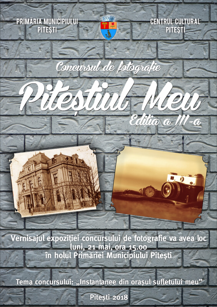 Primăria Municipiului Pitești, prin Centrul Cultural Pitești organizează în perioada 18 aprilie – 17 mai 2018, a treia ediție a Concursului de Fotografie sub genericul „Piteștiul Meu”, cu tema „Instantanee din orașul sufletului meu”, în vederea încurajării artei fotografice și din dorința realizării unei radiografii în imagini a vieții orașului nostru.