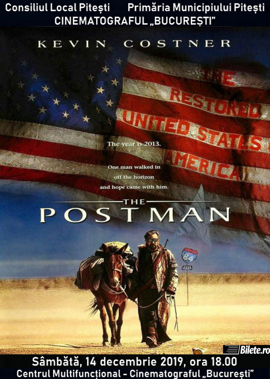 Sâmbătă, 14 decembrie 2019, ora 18.00, la Cinematograful de artă „București” va fi difuzat filmul „Poștașul” („The Postman”). Regia îi aparține lui Kevin Costner, în rolurile principale fiind Kevin Costner și Will Patton.