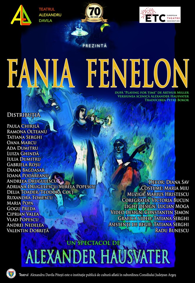 În weekend (28 – 29 septembrie 2019) v a aveaq loc premiera spectacolului ”FaniaFenelon”, după ”Playing for time” de Arthur Miller, versiunea scenică Alexander Hausvater, în Sala Mare a Teatrului ”Alexandru Davila” Pitești. Cronologic, ceasta este a treia premieră a teatrului, din acestă stagiune abia începută, după Nevesele vesele din Windsor și La vie en rose, spectacole de comedie, respectiv revistă.