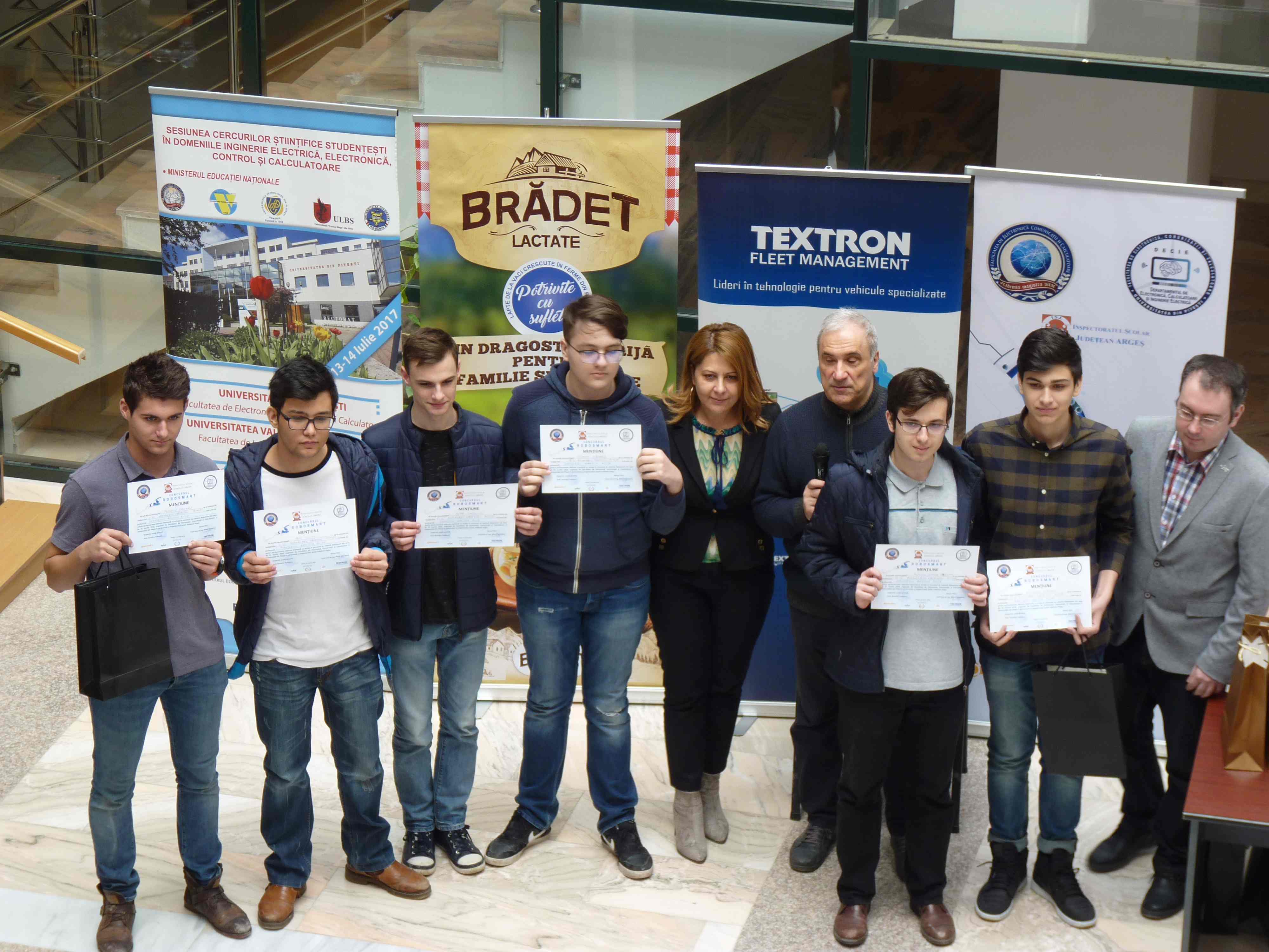 Facultatea de Electronică, Comunicaţii şi Calculatoare (FECC) din cadrul UPIT a organizat concursul de robotică intitulat RoboSmart, extrem de atractiv pentru elevi, acesta fiind și publicul țintă căruia i se și adresează. Concursul propriu-zis constă în parcurgerea contracronometru a unui traseu (follow line) cu obstacole. Au fost oferite premii materiale câștigătorilor, dar și profesorilor coordonatori. Și cum firma Textron dorește să se implice în mod activ în creșterea de noi talente prin colaborarea cu Universitatea din Pitești și liceele de specialitate din județul Argeș, compania a sponsorizat concursul RoboSmart cu: roboti bazați pe platforma Arduino pentru în valoare de 5000 lei și 35 de premii pentru participanți constând în: rucsac, termos, boxe Bluetooth, stick USB, etc., în valoare de aproximativ 10000 lei.